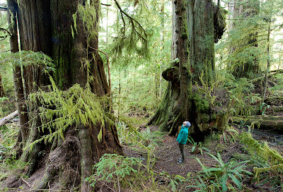 | An amazing group of ancient redcedars.The surrouding areas were all logged within the past 100 years but for some reason these magnificent trees were spared. These trees are along the trail to the Red Creek Fir - the worlds tallest Douglas Fir Tree near Port Renfrew on Vancouver Island. Photo by TJ Watt of the Ancient Forest Alliance |